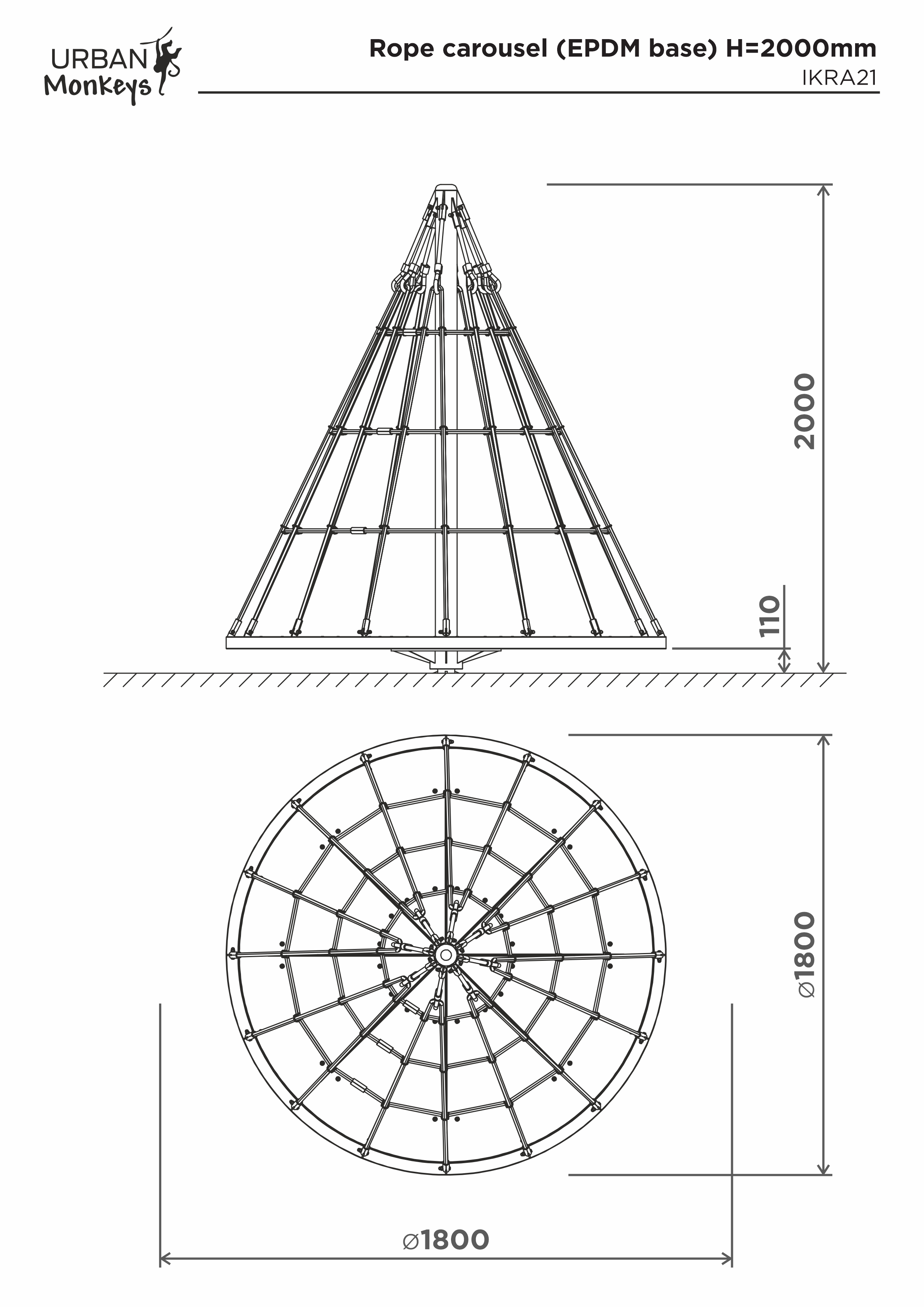 Карусель канатна (основа з антиковзаючого HDPE) Н=2000мм